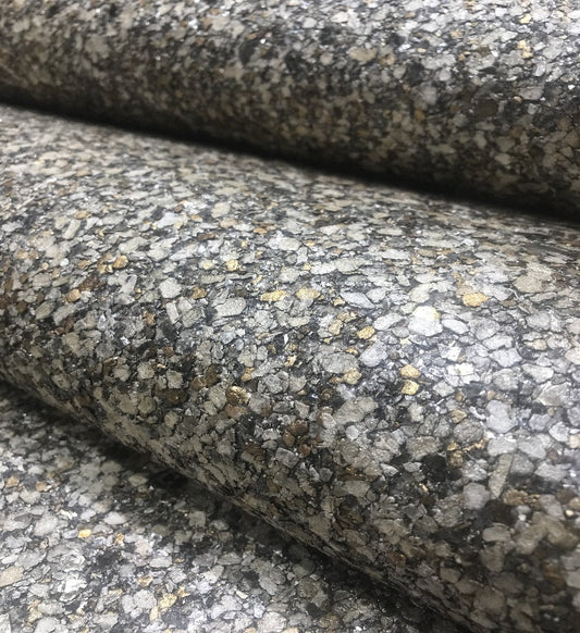 Mica High Gloss Pebble Wallpaper - Anthracite (Silver/Gold Pebble) - ML59